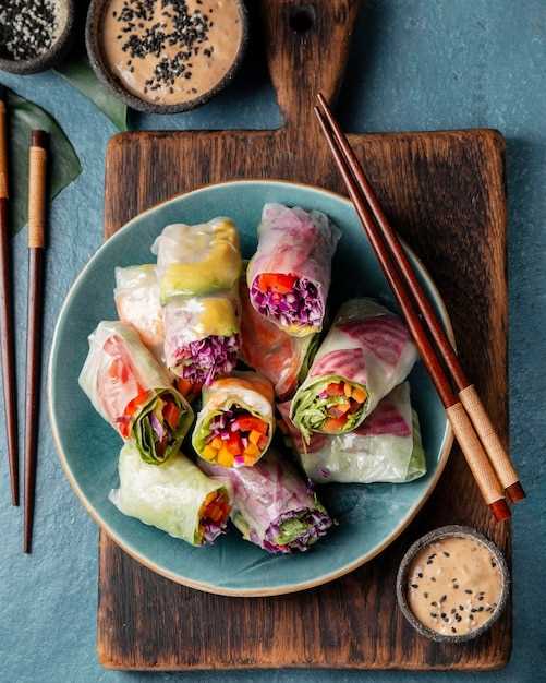 Вегетарианские овощные спринги — это отличная закуска, которую можно быстро приготовить и подать к столу. Они хорошо сочетаются со свежими овощами